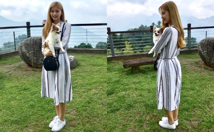 子瑜嘉義度假⋯愛犬抱緊胸前 !照片曝光「萌笑竟然神複製」網笑噴:好幸福~