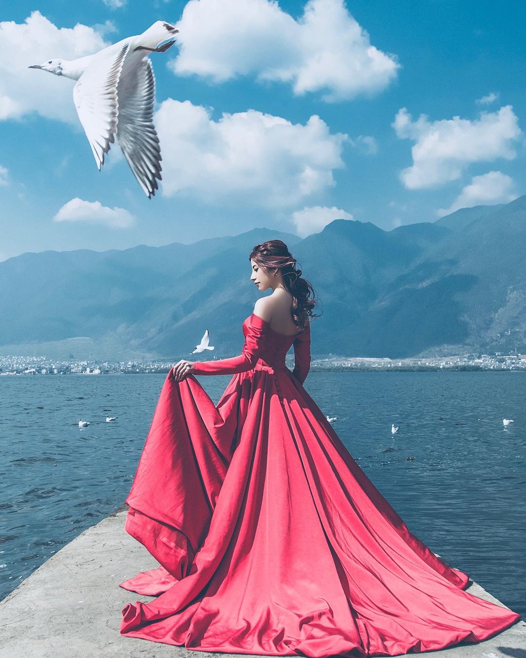 除了又美又性感的婚宴照外,Inthira 也PO出了和友人穿著中式服裝的搞笑耍帥照片,照片中的Inthira戴著一副圓形的墨鏡,身穿中式喜服,手拿扇子,坐姿十分豪邁,展現出另一種相當瀟灑霸氣的樣貌,十分逗趣。