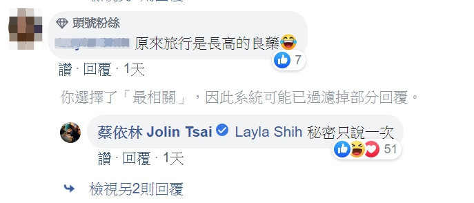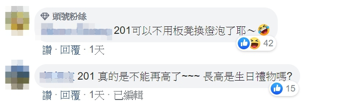 貼文一出,網友紛紛配合蔡依林搞笑留言:「201可以不用板凳換燈泡了耶~」、「201 真的是不能再高了~~~ 長高是生日禮物嗎?」、「始祖巨人酒令」「原來旅行是長高的良藥」,更有網友真的替蔡依林更改了維基百科,加了一行字表示「據稱於2019年9月16日因為一次旅行,身高猛烈暴增為201公分(不能再高了)」。