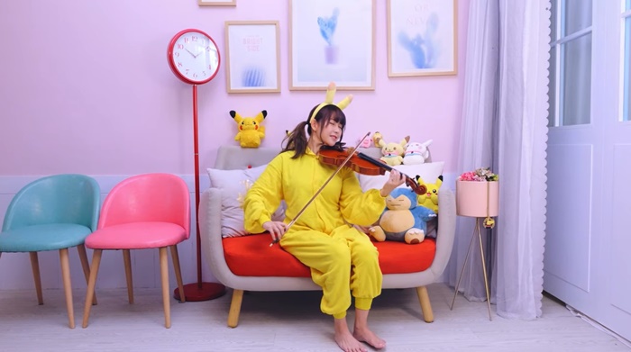 阿樂日前在Youtube上傳最新小提琴cover,只見影片中,阿樂身穿皮卡丘裝,模樣十分俏皮可愛,當她完全沉醉於演奏中時,瞬間令不少粉絲為她傾倒!阿樂這次Cover的是卡通《神奇寶貝》第一季的片頭曲,小提琴聲一出,立刻勾起大票網友滿滿的「童年回憶」!