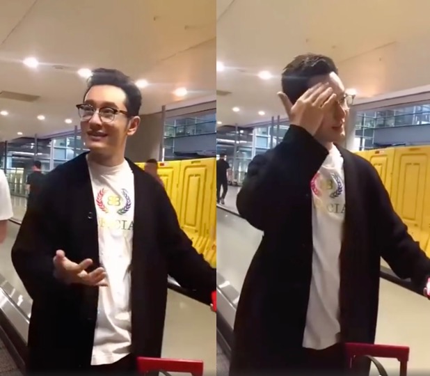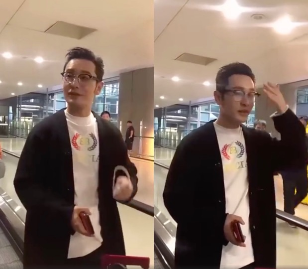 然而在17號兩人一前一後現身上海機場,當黃曉明通關後被粉絲問到:「baby在後面一班飛機欸」時,黃曉明一瞬間面露尷尬,且不斷用手擦額頭以及臉部上的汗,而黃曉明的手似乎也不斷冒著汗,之後他就把頭轉向另外一邊,不再回應。黃曉明通關之後Angelababy也接著現身機場,當天Angelababy身穿一件短版的緊身黑素T,微微露出纖細的小蠻腰,而她頭上戴了一頂草綠色的帽子,顏色非常跳令人為之一亮。
