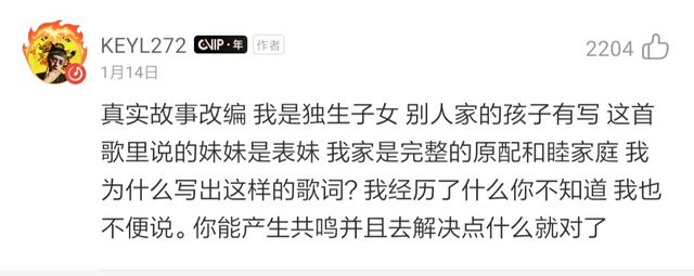 然而在今年1月中時,劉聰曾發文解釋這首歌創作的意涵,寫下:「真實故事改編,這首歌裡說的妹妹是表妹,我家是完整的原配和睦家庭,我為什麼能寫出這樣的歌詞?我經歷了什麼你不知道,我也不便說」,因此許多網友也紛紛猜測這首歌曲描述的是劉聰表妹的故事。當劉聰參加《中國新說唱》第二季時,在體育館海選環節他曾和鄧紫棋提到:「我一直想讓妳幫我唱一首hook(副歌)」,而當時劉聰提到的歌曲正是《離家出走》。
