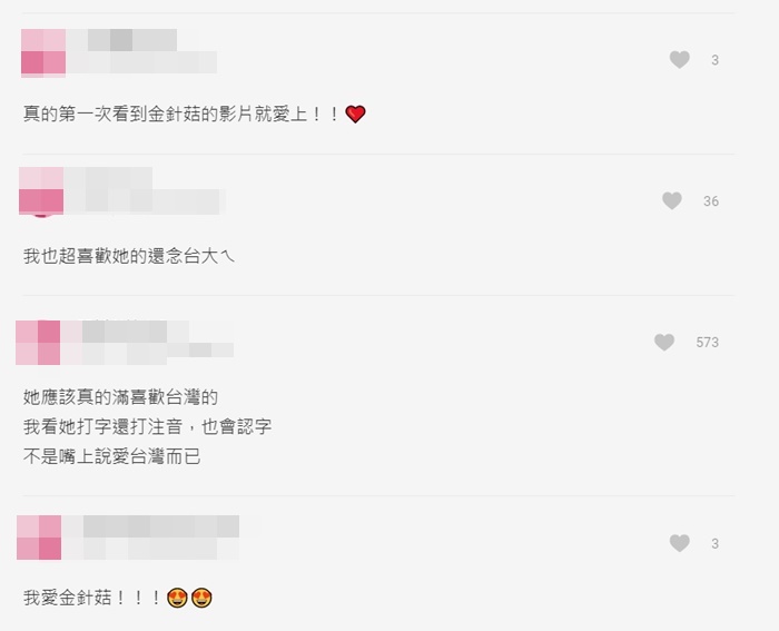 原PO也提到「金針菇」廣受大家喜愛很重要的一點,雖然「金針菇」是韓國人,但可以從影片中看出她對台灣的熱愛,用影片紀錄台灣美麗的地方,「我覺得她熱愛台灣這片土地的心情不輸我們」!