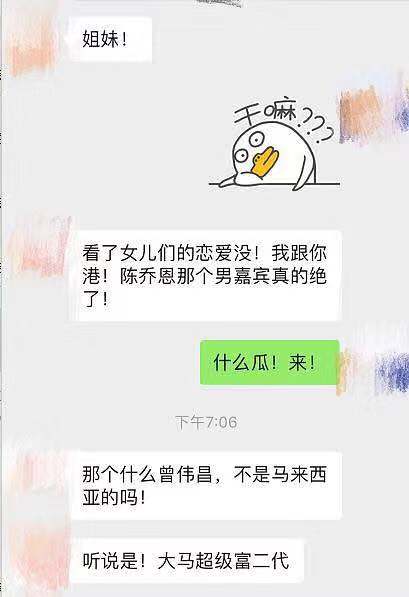 當時曾偉昌在節目上透露,自己從事健康食品研發,也是愛好藝術的業餘畫家。但是近日有網友爆料,其實曾偉昌背景強大,財力豐厚,是馬來西亞的超級富二代,本身坐擁3座莊園,前女友更是馬來西亞小姐。爆料一出,立刻在網上掀起熱議,有網友表示「怪不得陳喬恩這種顏控能看上他」、「是不是馬上不醜了」,但也有網友認為「就算他是真的富二代又怎麼樣,陳喬恩富一代,人家驕傲了嗎?幹嘛說人家是看上男方的錢」、「陳喬恩不缺錢,有錢的漂亮姐姐,勿cue姐姐」。
