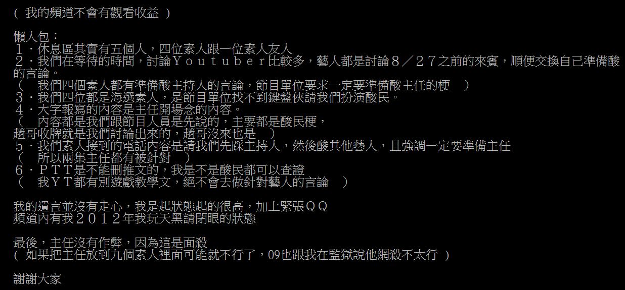 《狼人殺》素人遭轟沒禮貌!IG澄清「被要求酸主任」還有大字報 藝人助理出面狠打臉
