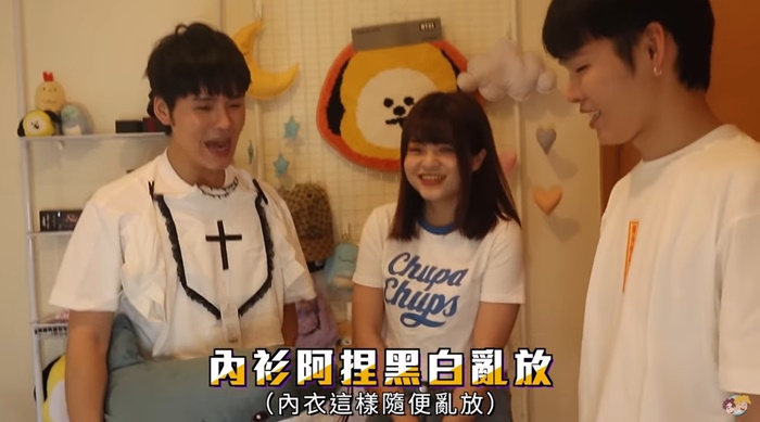 意外發現客廳有內衣,當時展瑞還幫忙緩頰,指出創作者都很忙,不小心忘東忘西十分合理!沒沒想到「內衣之亂」還沒完,當展榮、展瑞來到一個小房間後,內衣四散在房間各處,這也讓展榮開啟台語說教模式,「妹妹啊,我們做人要有矜持一點,內衣這樣隨便亂放,如果男生看到齁,不好你知道嗎?」