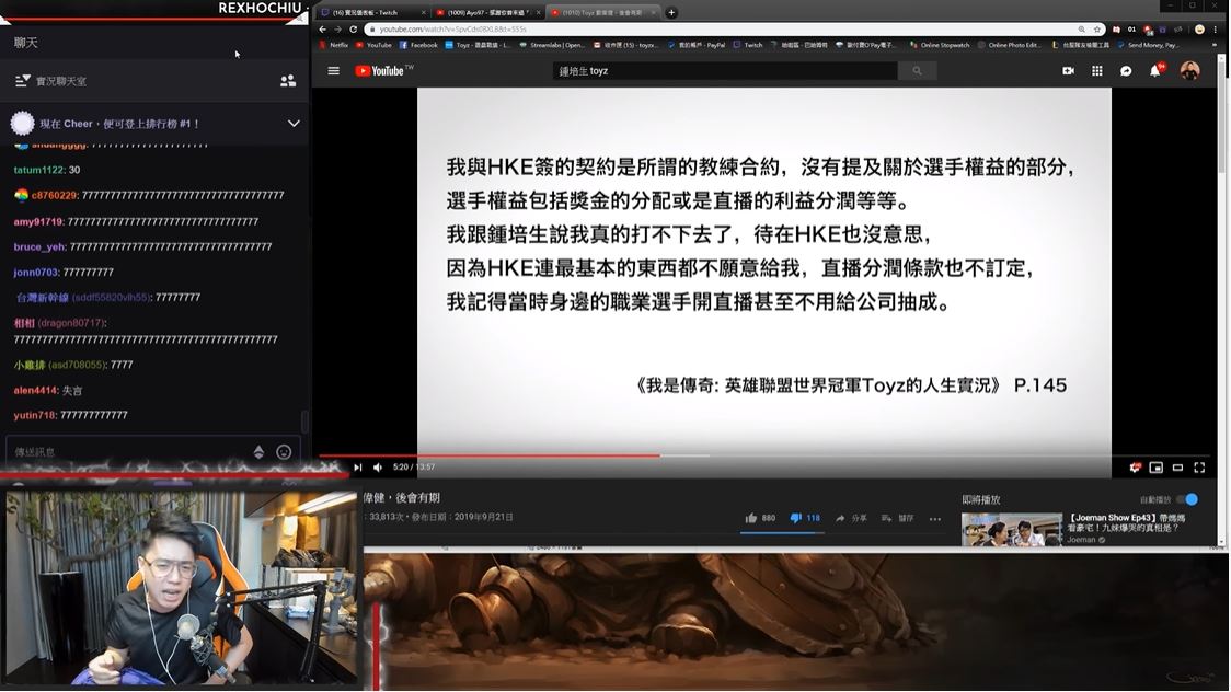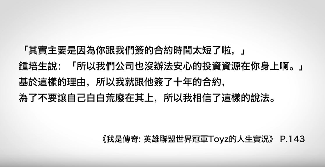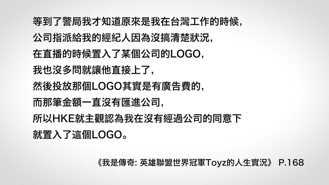 知名遊戲實況主「Toyz」過去曾是英雄聯盟電競職業選手,有著「中路野獸」的稱號,對於電競圈有相當程度的貢獻,近期他也將自身經歷寫進自傳書籍《我是傳奇:英雄聯盟世界冠軍Toyz的人生實況》中,不料卻引來了前公司老闆「鍾培生」在影片中控訴「毀謗」,影響個人及公司聲譽,而近日「Toyz」也針對此影片做出了回應,更怒嗆「(你)一次告不成,再去告第二次」。