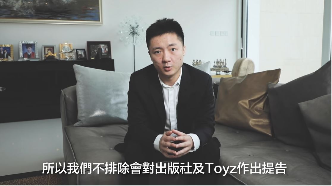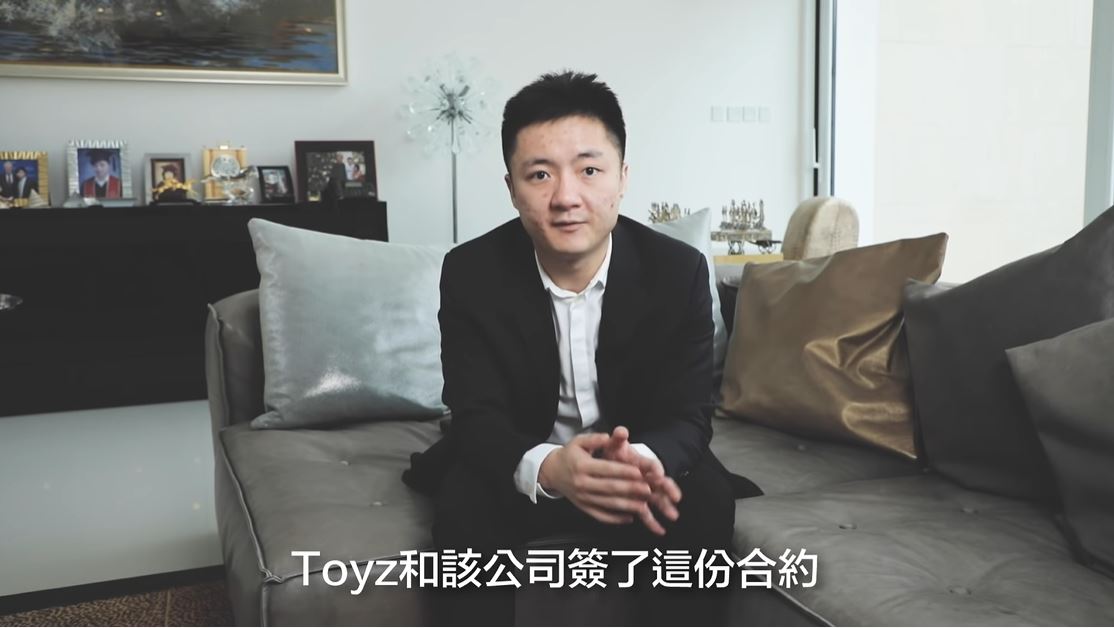 之後,「Toyz」也隨即在直播中對於這支影片做出回應,影片中「Toyz」強調自己絕對沒有私接廣告,也沒有吞掉公司的錢,一切都是聽從當時經紀人的安排。除此之外,他更針對影片中所出示的「Toyz」合約簽名做出反駁,直言「找字跡專家來」,聲明那絕非是自己的簽名,一切皆是「鍾培生」栽贓嫁禍,甚至怒道「如果能弄死我的話,你早就弄了」,而在直播中他更數度怒嗆「建議(你)直接提告,一次告不成,再去告第二次」「千萬不要把影片下架」,強調自己的清白,不怕「鍾培生」提告。