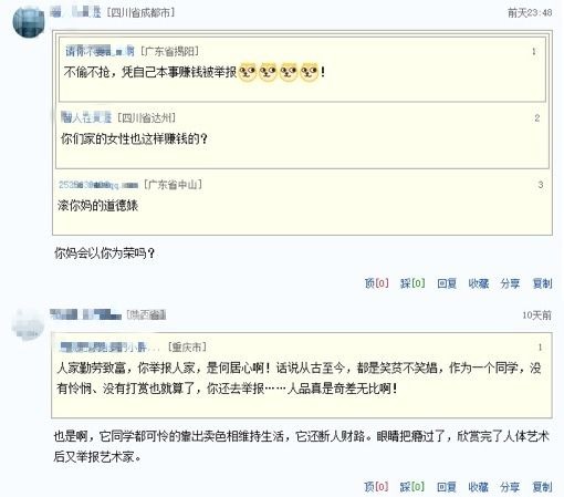 少女被捕之後在網路上也引起兩極的討論,許多大陸網友對於少女的處境感到非常同情,說道:「舉報是什麼心態,別人做什麼關你屁事」、「這位同學也看直播了,憑什麼告發人」、「不偷不搶,憑自己本事賺錢也被舉報」,但另一派的網友則認為這行為不妥:「網上不代表就是法外,愛財也應該取之有道,不應觸犯法律」、「傷風敗俗!國情及中國傳統文化不允許」,掀起兩極的討論。