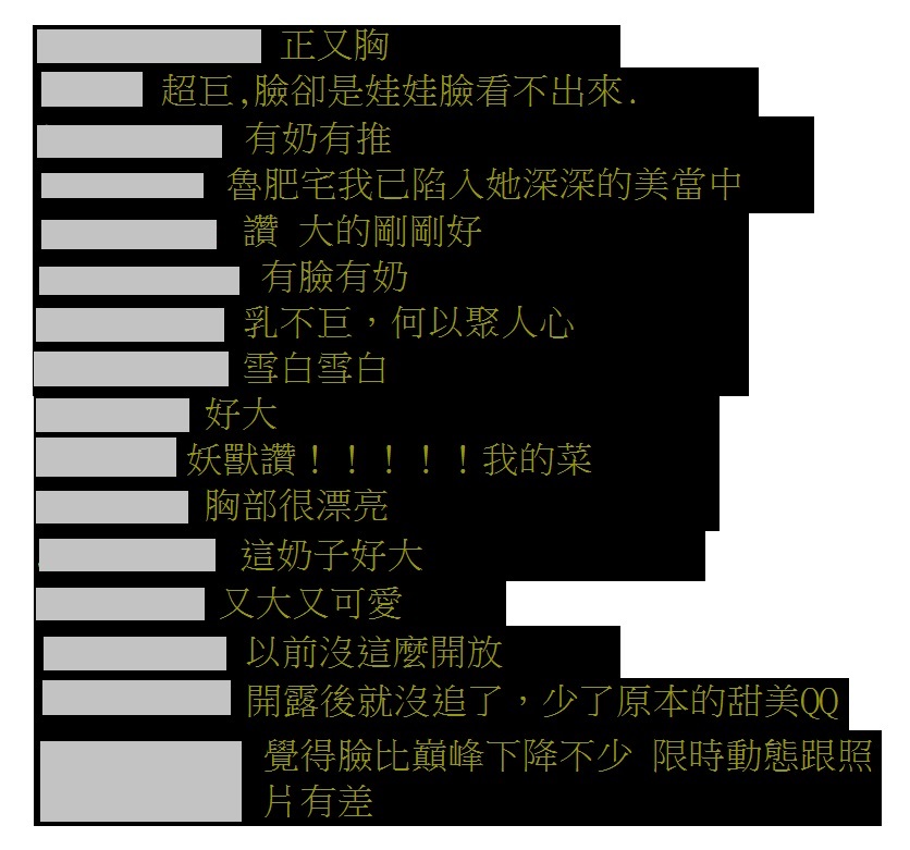白皙的皮膚,再加上幾近呼之欲出的雪乳,讓版上的網友看了直呼「超巨,臉卻是娃娃臉看不出來」「魯肥宅我已陷入她深深的美當中」「有臉有奶」「妖獸讚!!!!!我的菜」「又大又可愛」,不過也有網民認為過去清新甜美的「王緒緒」才是經典,更大嘆「以前沒這麼開放」「開露後就沒追了,少了原本的甜美QQ」「覺得臉比巔峰下降不少,限時動態跟照片有差」。
