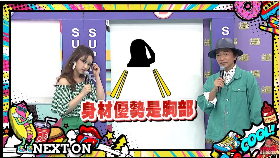 在節目中,元元也自認「身材優勢是胸部」,更爆料自己從來沒有試鏡過,因為廠商看到元元的照片之後,就決定要錄用她。除此之外,元元更透露,自己的歷任男友「都是因為胸部而決定交往」,讓主持人吳宗憲和Sandy啞口無言,直呼:「這有什麼好驕傲的?」,但是元元隨後也解釋,只要她穿上較為貼身或是性感的衣服,男友就會吃醋,所以最後「也因為胸部而分手」。