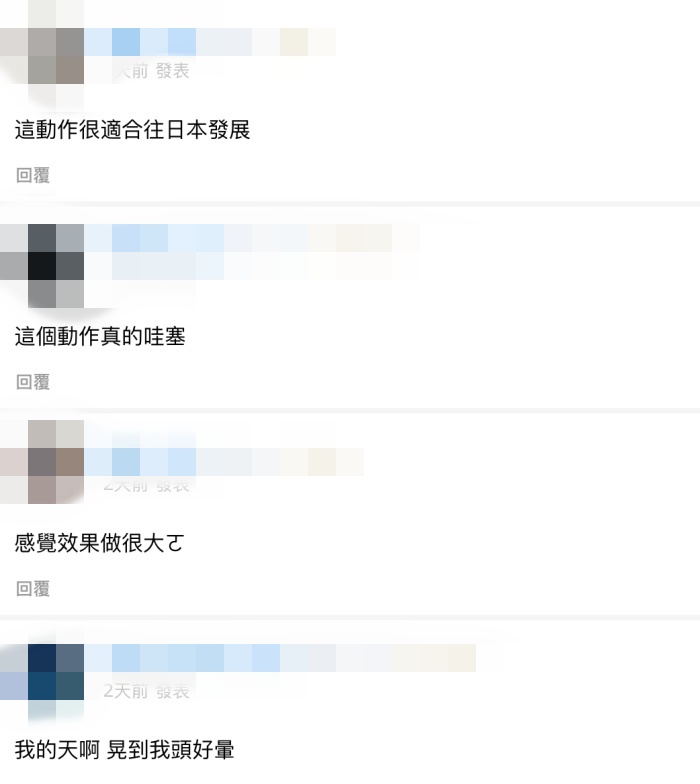 阿樂晃動影片也被網友剪成精華,分享在網頁《遊戲大亂鬥》,引來不少人留言表示,「這個福利真的超過100」、「好晃好晃~~晃的我頭好暈」、「這動作很適合往日本發展」、「這個動作真的哇賽」、「這上上下下頂不住了」。