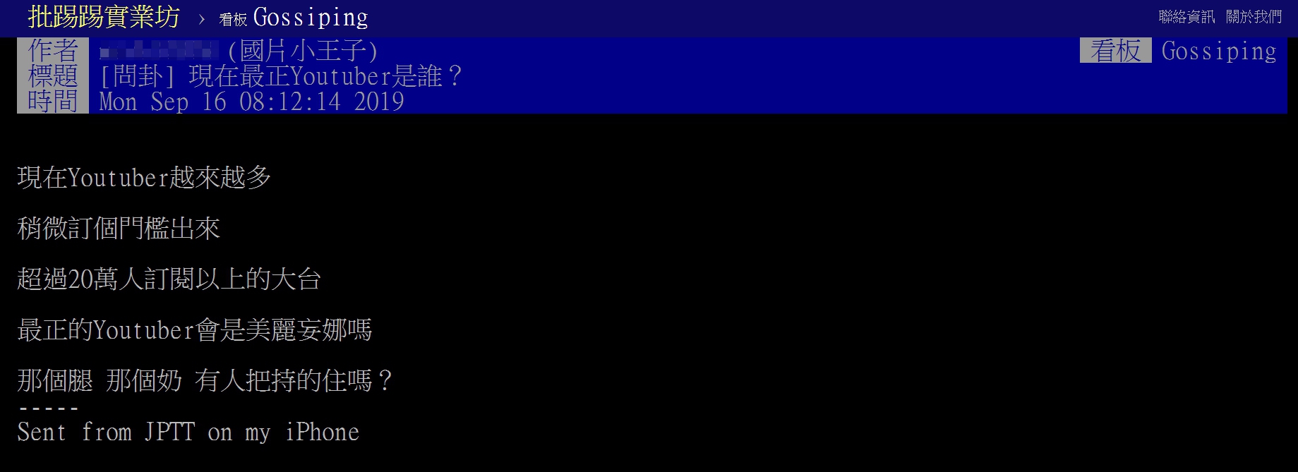 隨著Youtube盛行,不少直播主也轉行成為Youtuber,因為競爭激烈,Youtuber除了拍攝有趣的影片之外,外貌條件也越來越重要,導致Youtube界美女如雲,堪比電視上的女藝人。近日有鄉民在論壇《PTT》上PO文好奇:「現在最正YouTuber是誰?」,引發熱烈討論,結果出乎意料,呼聲最高的居然是「她」!