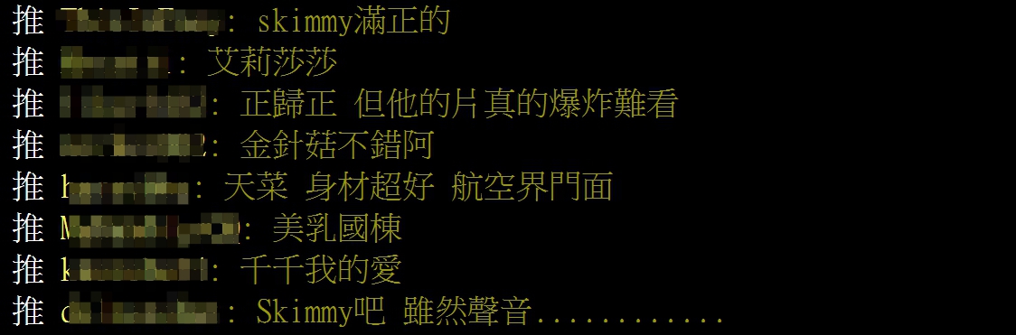 16日時,有網友在論壇《PTT》上表示:「現在Youtuber越來越多,稍微訂個門檻出來,超過20萬人訂閱以上的大台,最正的Youtuber會是美麗妄娜嗎?那個腿、那個奶,有人把持的住嗎?」,好奇詢問網友意見,結果網友意見五花八門,紛紛提出各自的人選「天菜娘娘也很正喔!」、「SKimmy啊,最正的」、「美麗妄娜,奎丁,兩位顏值擔當」、「吳斐莉,清新自然」、「千千我的愛」、「把我們鄉民女神艾莉莎莎放哪兒?」。雖然台灣有許多知名Youtuber上榜,其中也不乏空姐和美妝Youtuber,但最後結果出乎意料,呼聲最高居然是來自韓國的「芒果」!