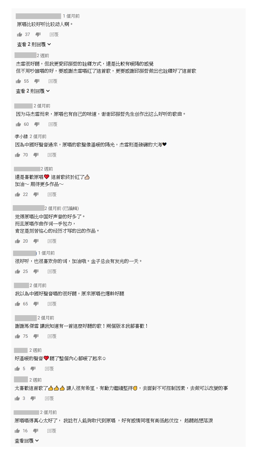 對此,有不少網友則力挺「邱振哲」,反駁直稱「杰雪很好聽,但我更愛邱振哲的詮釋方式,還是比較有暖陽的感覺」「原唱的歌聲像溫暖的陽光,杰雪則是磅礡的大海」「我以為中國好聲音唱的很好聽,原來原唱也爆幹好聽」「好溫暖的聲音」,大多數網友都一致認為原唱「邱振哲」的歌聲充滿了情感和溫暖,帶給人們不一樣的感受,更讚譽有加地認可了「邱振哲」的詞曲創作能力。