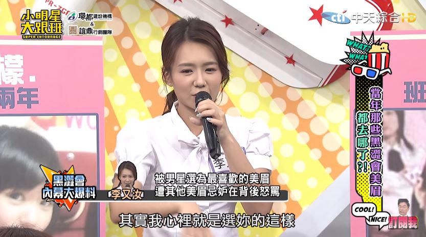 藝人李又汝在2006年參加《我愛黑澀會》錄製,以「檸檬」為藝名出道,當時受到不少粉絲喜愛。但後來因為媽媽罹癌,李又汝為了照顧罹癌的母親,決定離開演藝圈,直到母親去世後,李又汝才重返幕前,演出《實習醫師鬥格》,人氣再度翻升,一圓明星夢。近日她參與綜藝節目,談到當年在《黑澀會》時期,曾經因為被偶像派男星選為「最喜歡的美眉」,而被其他美眉忌妒!