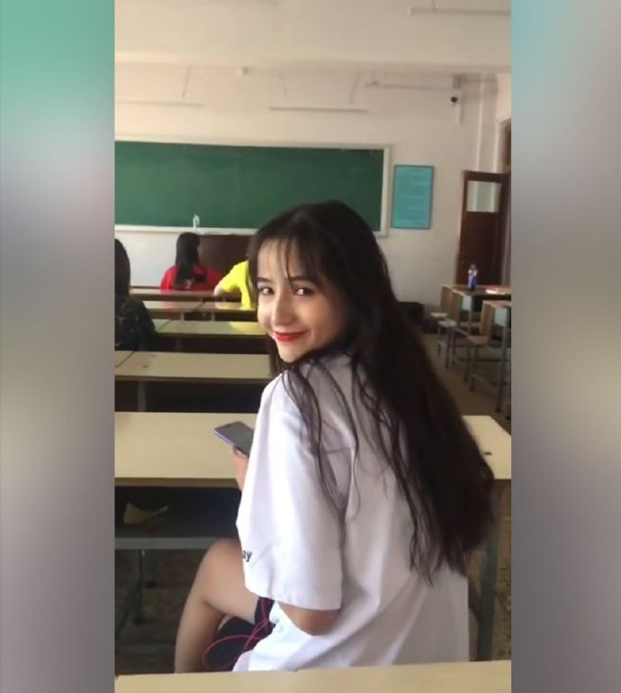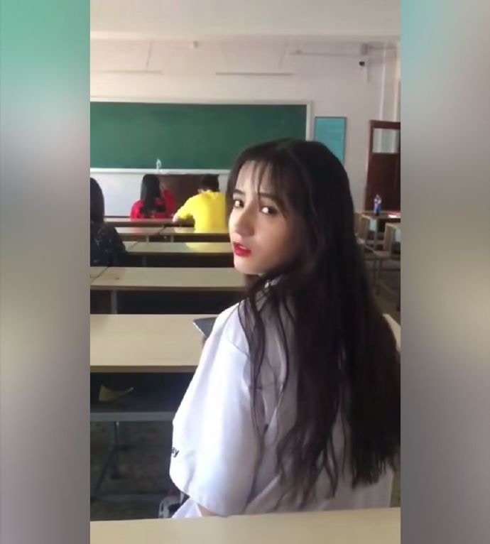 近日在網上有一組校花回眸的照片造成網友熱議。照片中的女同學原本坐在位置上,因為後桌的同學輕拍她的肩膀回頭後,發現後方同學正在拍照,便嫣然一笑,露出一個甜美的笑容。該名女同學似乎是新疆維吾爾族人,輪廓相當深邃,不僅臉蛋小巧,更有高挺的鼻子和一雙水汪汪的大眼睛,五官精緻立體,宛若洋娃娃一般,笑起來更是明豔動人,因此照片一出,立刻融化無數網友的心。