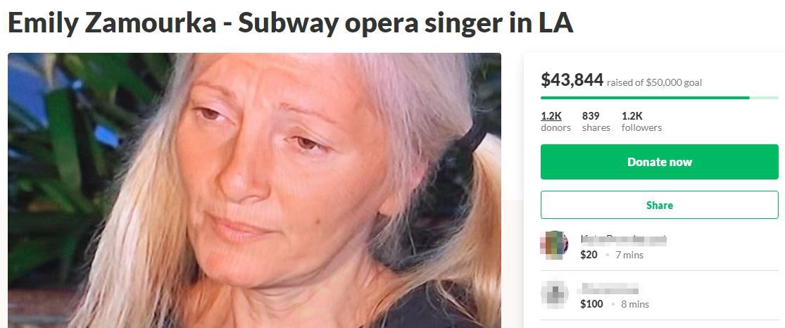 走在街頭應該時常可見有人透過街頭表演賺錢,但外界也許也會發現路上某些人的奇特舉止,近日在美國的洛杉磯就有一名年已52歲的女街友艾米莉‧紮莫爾卡(Emily Zamourka),因為在韓國城地鐵清唱歌劇,驚人美聲被當地警方拍下上傳後在網路上瘋傳,然而街友艾米莉的真實身分卻超乎外界想像,會淪落街頭的原因更是讓人心疼。