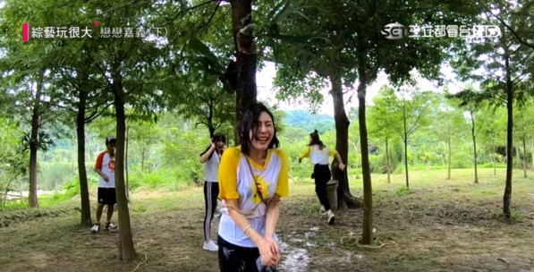 節目中,黃隊的陳漢典跟黑隊余祥銓兩人光是爬樹就花了不少時間,而跟他們搭配的Albee(范乙霏)和楊繡惠則是遲遲沒有被救到,接連被潑水懲罰,沒想到Albee穿著黃隊隊服一被潑溼之後,竟然透出了內搭的黑Bra,整個形明顯的在鏡頭前被看光光,讓不少網友看了都驚呼:「也太透了吧!」、「黑色直接透出來耶!」、「濕了!」