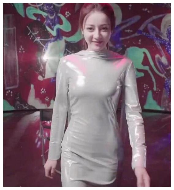 照片中,迪麗熱巴將頭髮綁成馬尾,身穿一件銀色的連身裙,而裙子的材質彷若橡膠一般,緊緊地貼在迪麗熱巴的身上,像是橡膠版的旗袍一般,突顯出迪麗熱巴豐滿的上圍和纖細的小蠻腰。在走動之間,迪麗熱巴的腿部線條更無所遁形,大展迪麗熱巴曼妙的身材曲線。因為裙子看上去像「鋁箔紙」一樣,所以也有不少網友這這件裙子暱稱為「鋁箔紙裙」。