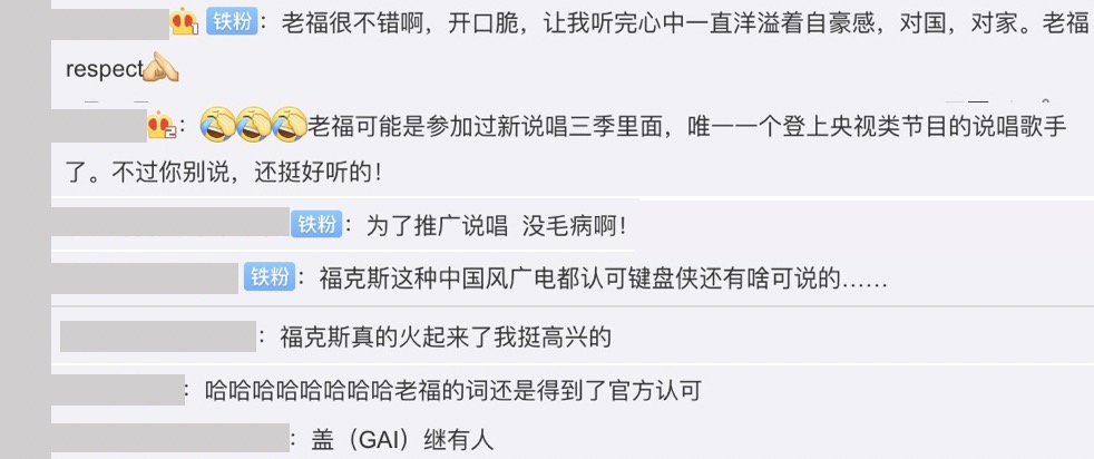 在大陸有非常多說唱廠牌,其中相當出名的「活死人」廠牌中有兩位選手:楊和蘇、福克斯都參加了《中國新說唱》第二季,楊和蘇在上一季節目中人氣就非常的旺,當時他止步於5進4,而他被淘汰的消息足足霸了榜微博熱搜10小時,這次楊和蘇帶著隊友「福克斯」一起來參賽,其中福克斯在節目中獨特的穿搭,以及充滿中國風的歌詞令大家印象深刻。在節目收官後,福克斯雖然止步於10強,但是近日他登上大陸央視進行演出,更被網友譽為「GAI接班人」。
