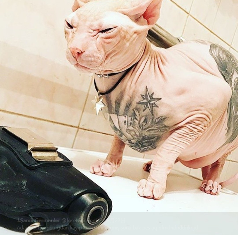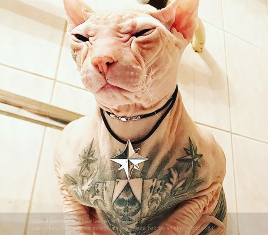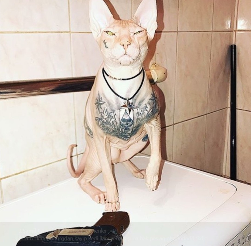 Shafiev真的做得太過火,竟然會想讓自己的愛貓也刺上刺青,這無非就是虐待動物的行為,更何況他還是養了一隻無毛貓,叫做Bes。Bes不同於一般的貓咪,由於全身沒有毛,其實本身皮膚就特別脆弱及敏感,照理說養無毛貓,Shafiev應該更細心照護Bes的身體健康及皮膚狀況,平時也需要為牠固定抹上寵物專用皮膚保養油。不過顯然他完全不在乎這些,就這樣帶著無辜的Bes去刺青,事後還把Bes全身刺青的模樣PO上網炫耀,Shafiev本來以為會在推特上獲得大量關注,沒想到引來大肆批評,網友們認為他涉嫌虐待動物!