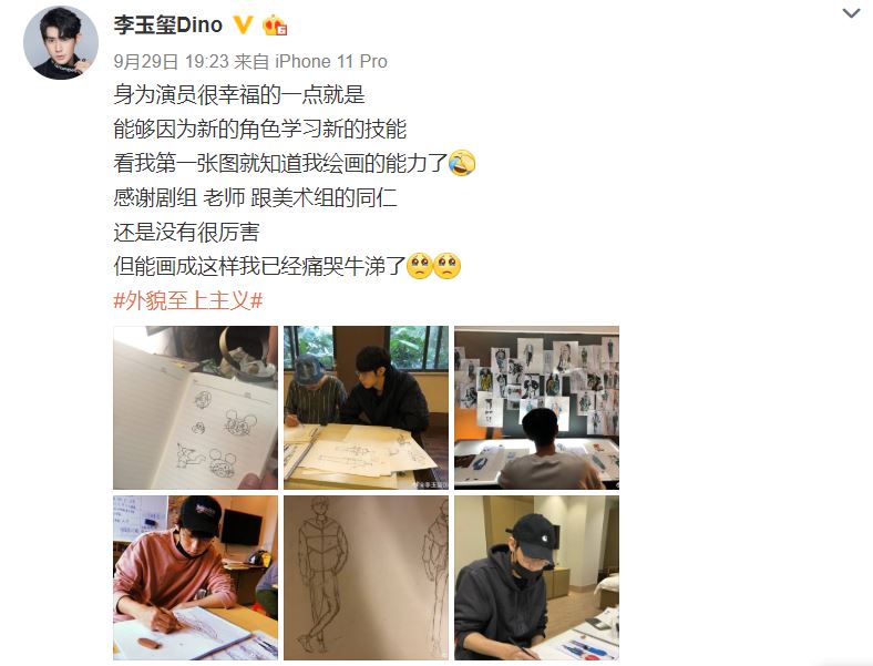 李玉璽先後在微博跟IG上發佈自己的練習成果,除了放上幾年前的畫作作為對比,也非常感謝能有這次的機會,並說可以為新的角色學習新的技能,是一件很幸福的事情,除了感謝劇組老師和美術組的同事外,也透露自己雖然還沒有很厲害,但是「能畫成這樣我已經痛哭流涕了」。