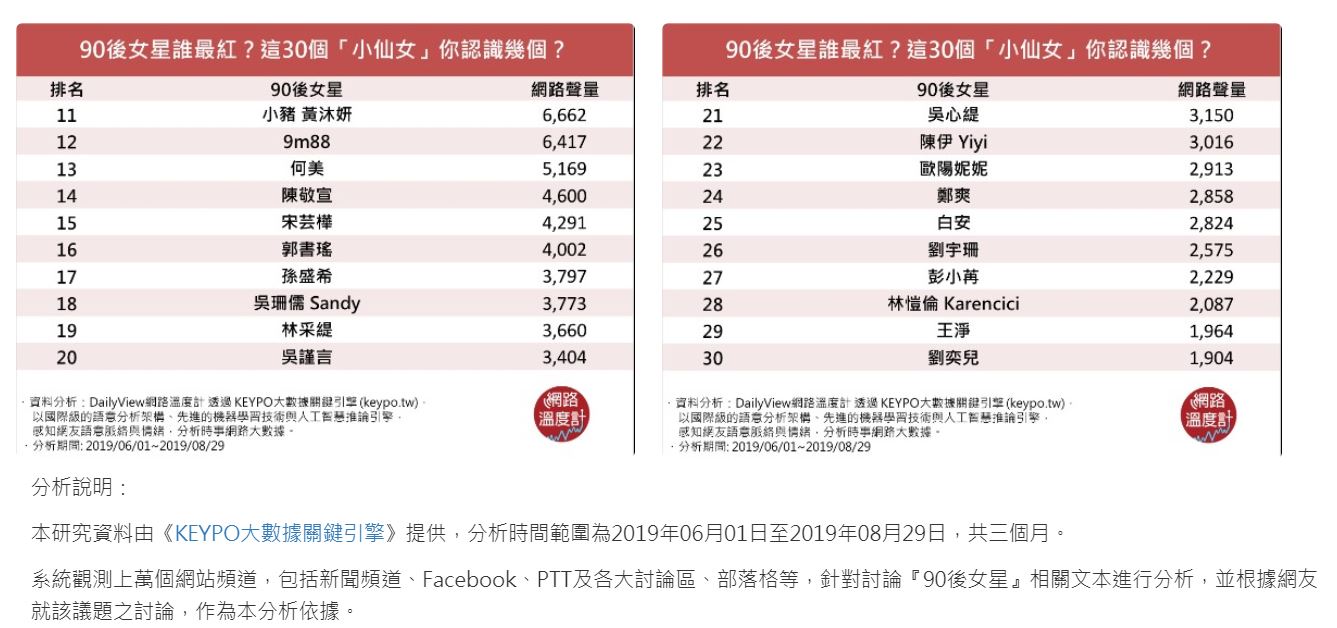 「女神」就像是每代人心中如何去定義美的象徵,而近日網路大數據分析平台DailyView網路溫度計,也針對華語圈90後的女星做了一番調查,最後獲得冠軍寶座的是才華洋溢又實力驚人的「她」拔得頭籌!