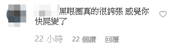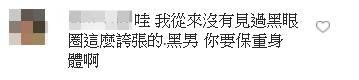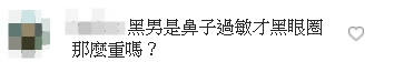 影片一出,許多粉絲都相當擔心,紛紛留言表示:「黑眼圈真的很誇張,感覺你快屍變了」、「黑男的黑眼圈快要跟熊貓做朋友了啦……身體要顧好,我們大家還要一直看你的」、「黑男是鼻子過敏才黑眼圈那麼重嗎?」、「哇,我從來沒有見過黑眼圈這麼誇張的,黑男,你要保重身體啊」。