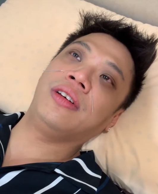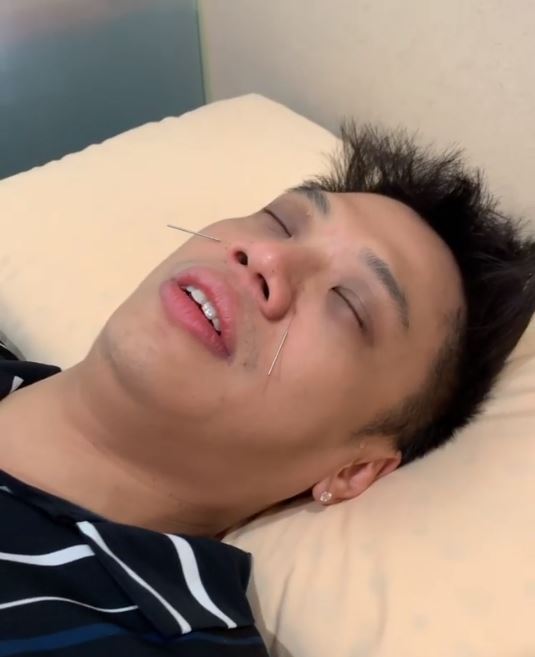 2日時,黑男透露自己在中醫診所,並在IG上分享一段影片。影片中,難得摘下墨鏡的黑男躺在床上,臉色相當憔悴,眼睛底下烏青一片,黑眼圈看起來相當深,全身因為被針灸而動彈不得,包括頭、腳、手和鼻子上都有插針。似乎因為鼻子過敏和工作勞累的關係,黑男精神不濟,過程中也頻頻擤鼻子,眼淚更是忍不住流出來。