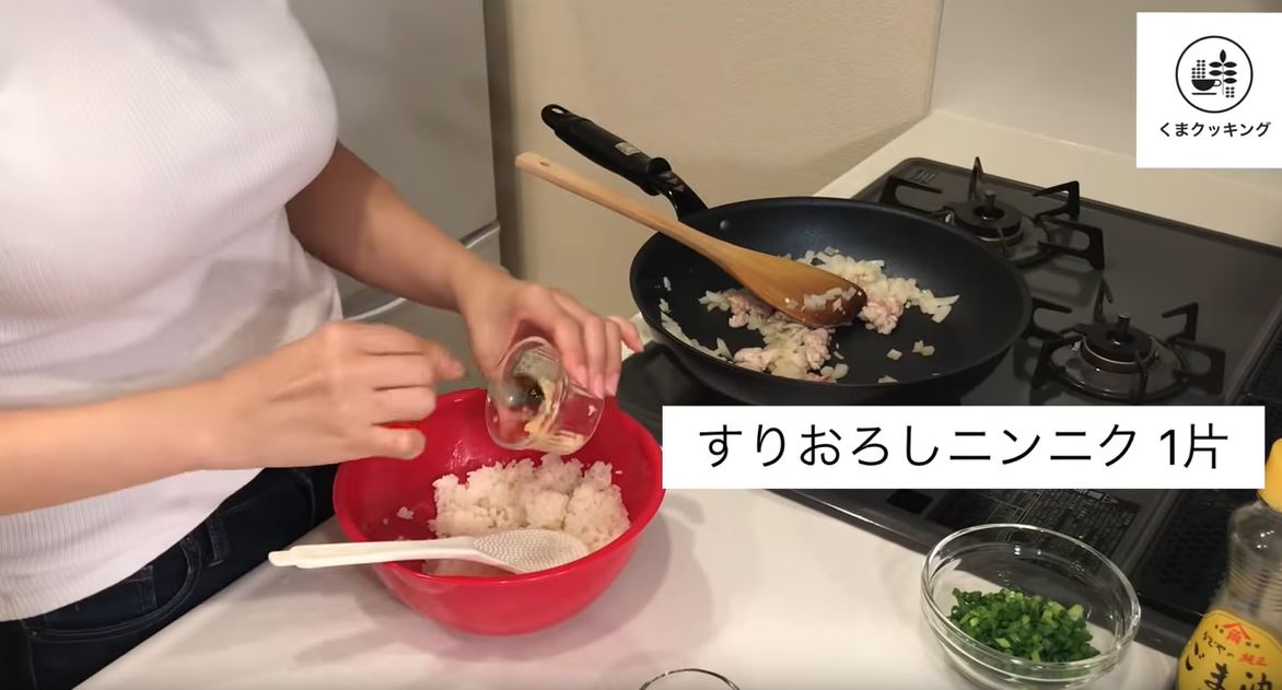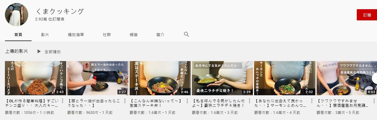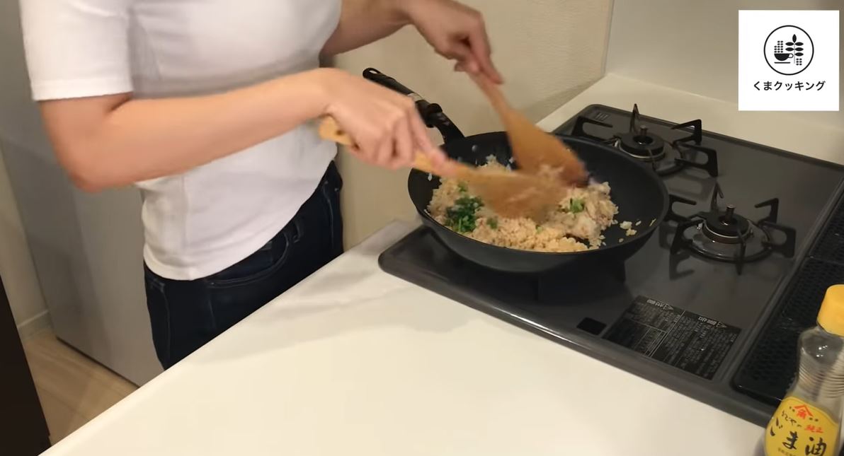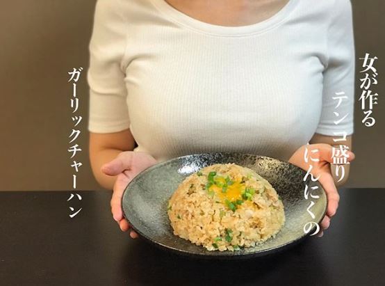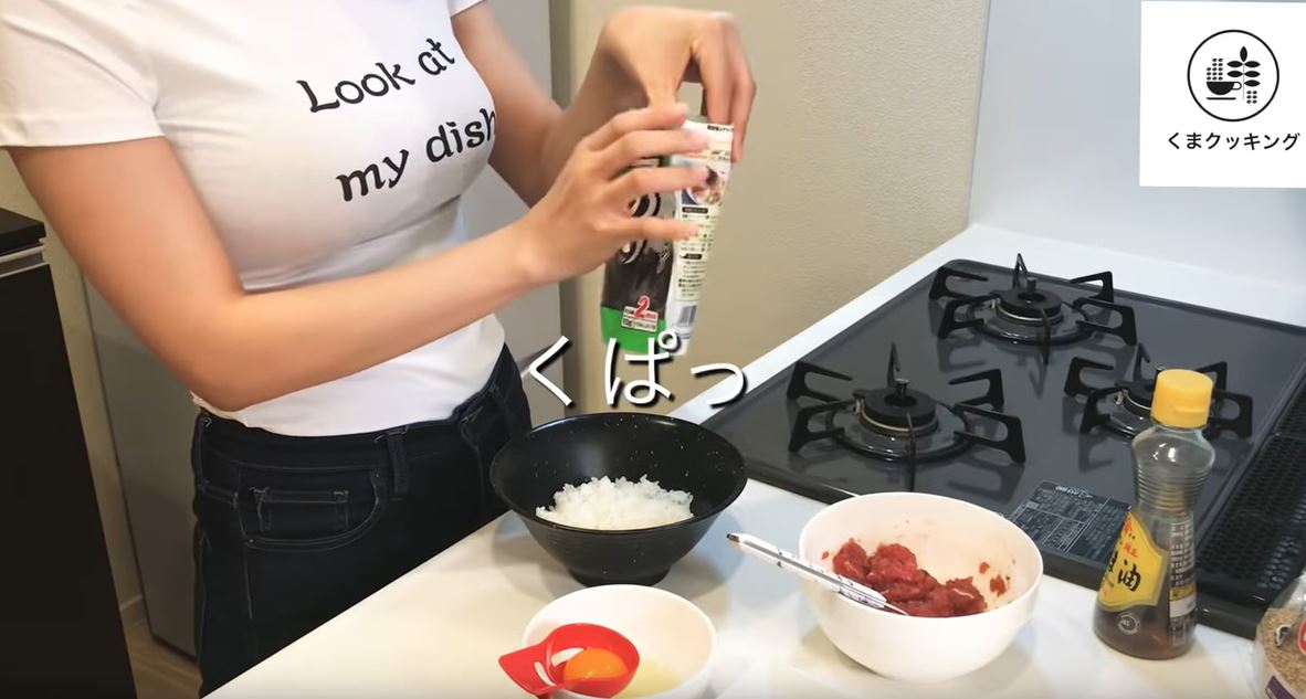 熊烹飪(くまクッキング)的影片幾乎每天都會上傳新的料理影片,其中較受矚目的像是8月27日實作炒飯就有超過29萬人觀看,女網紅同樣穿著緊身白T可見他不僅擁有紙片腰還有和一旁碗公等大的上圍,從備料、拌炒到盛盤都以文字仔細說明,不過卻引起大批網友歪樓說到「炒飯看起來好好吃,但是胸部也好美味喔」、「沒在看料理的請舉手」。