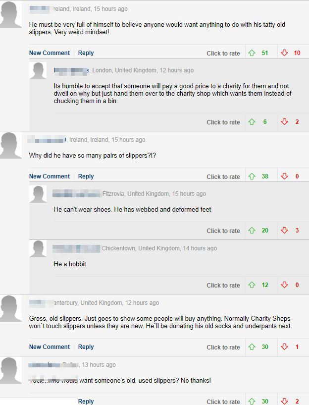 雖然多數鞋子都已經相當破舊,不過商店經理Rachail Pollard仍然表示每雙鞋應該至少還是能賺到100英鎊(約新台幣3799元),算是對商店的及時雨。事實上,該家商店已經不是第一次接手紅髮艾德的捐贈,並預計在12月舉辦一次拍賣會,出售紅髮艾德的二手衣物和物品,然而紅髮艾德熱心公益網友似乎無法買單更說到「好噁!誰要別人穿過的破鞋不用了謝謝」、「難道接下來連內衣褲跟襪子都要賣嗎」、「光看鞋子都聞到腳汗味」。