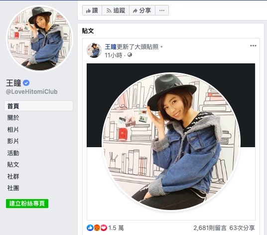 王瞳在記者會結束之後,還馬上換了笑咪咪的大頭貼。/圖片來源:王瞳臉書