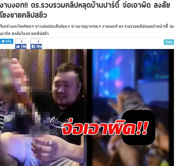 根據泰媒《Thai Examiner》報導,已故網紅Lalabel Tiff Ramperno生前最後和閨蜜參加狂歡趴陪酒的影片已經在網路上流傳,而派對中6名男子包括29歲的主辦人和另5名男客。影片中可見周圍燈光十分昏暗,一名穿著窄裙的女子就大喇喇地跨坐在男客人身上,動作狀似親密似乎已經不只單純喝酒同樂,另男子從側面摟抱女方時,手裡拿的正方形物品有成為網友焦點猜測就是安全套。