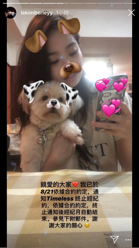 陳芳語本日於10/4下午三點時,在自己的Instagarm上PO出多則有關於,終止經紀約的圖文,第一張是發出和自己愛狗的照片,雖然照片中的她看起來非常幸福,但和文字卻有著強烈的對比,照片中的文字寫著:「親愛的大家 我已於8/21依據合約約定,終止通知後經紀月自動結束。參見下封郵件。謝謝大家的關心」字句中透露著些許無奈。