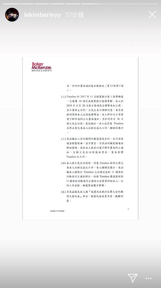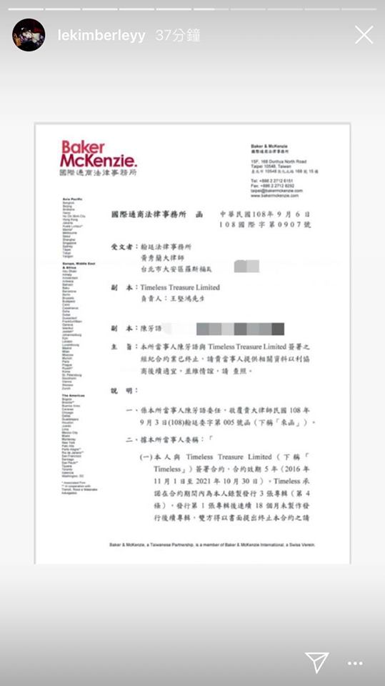 接下來三張終止合約的截圖,可以清楚了解原來陳芳語和經紀公司,從2016年11月1日到2021年10月30日一同簽下為期五年的經紀約,在離合約結束將近一年的時間下,因為經紀公司曾允諾陳芳語會在五年內發表三張專輯,但經紀公司卻在她發行第一張專輯後,連續18個月未製作發行專輯,已經徹底違約在先。