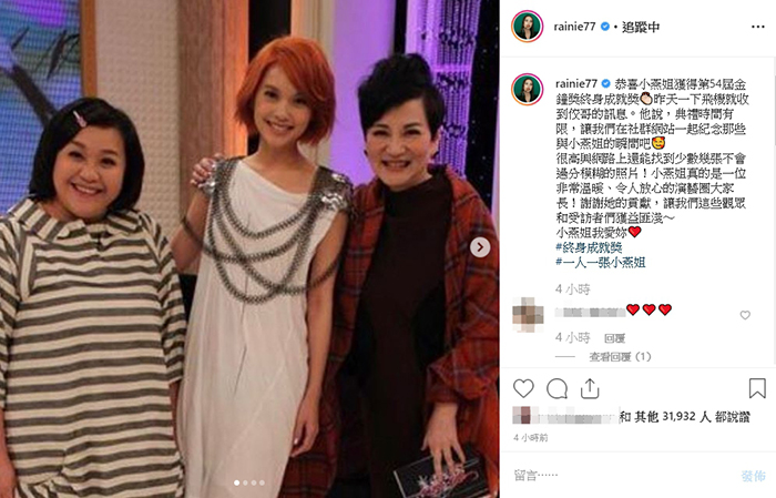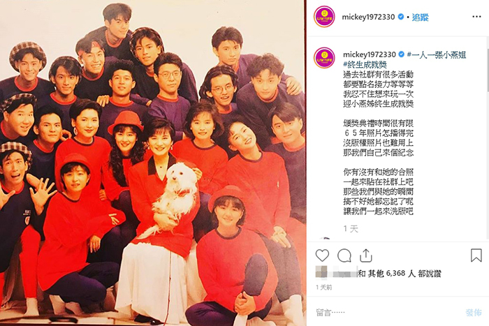 3日時,黃子佼IG上PO文:「頒獎典禮時間很有限,65年照片怎播得完?沒版權照片也難用上」,透露自己想發起「#一人一張小燕姐」接龍活動,邀請大家一同分享和張小燕的合照,自己也率先響應,曬出自己和小虎隊、小燕姐的珍貴合照。發文一出,立刻引起演藝圈廣大迴響,上百位藝人在社群網站上PO出自己和張小燕的合照,蔚為壯觀。