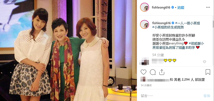 張小燕出道多年,5歲就出道拍戲、演舞台劇,從童星一路到綜藝教母,6度獲金鐘獎綜藝節目主持人獎,也是金鐘視后,對台灣電視圈奉獻極大,獲得金鐘54「終生成就獎」,是台灣電視圈永遠的「大家長」。入行65年的張小燕人脈極廣,提攜後輩不留餘力,近來,她的愛徒黃子佼擔任金鐘獎主持人,在金鐘獎頒獎典禮前特地在網路上發起「#一人一張小燕姐」活動,一天之內就吸引上百位明星洗版社群網站,曬出自己和張小燕的合照。