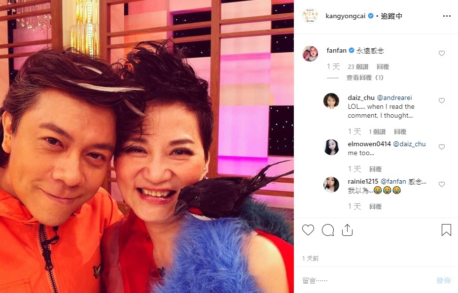 在蔡康永貼文下面,有不少藝人也留言表示心情,不過最讓人感到訝異的是,藝人范瑋琪的留言超怪異,她只留下4個字「永遠感念」,搞得好像真的小燕姐走了一樣!讓網友們驚訝不已,網友為了尋找共鳴,點開了范范下方的留言,結果發現有網友留言跟范范解釋說「She's still Alive...(她仍然活著...)」,讓其他網友看完也都笑到不行XDD