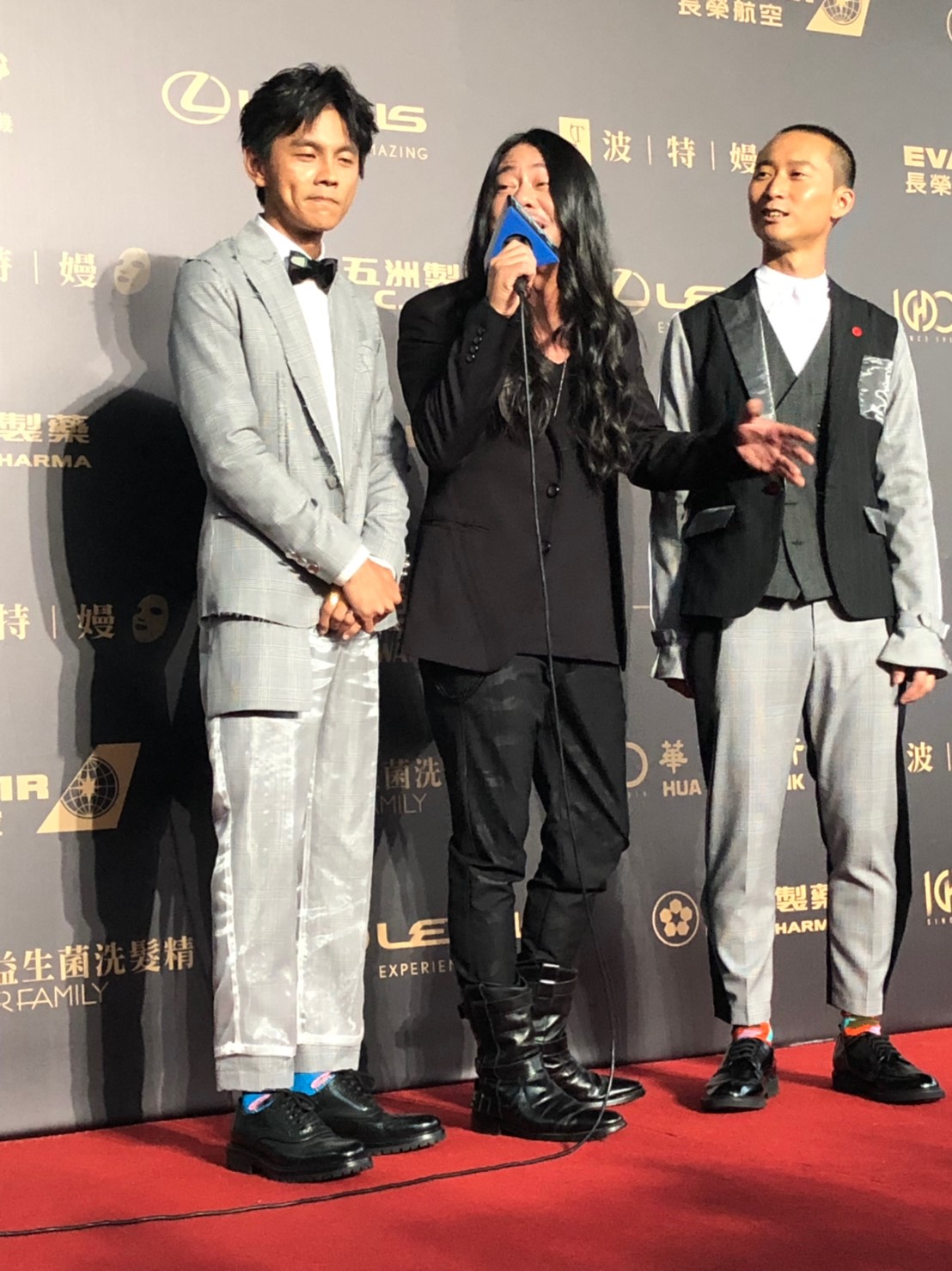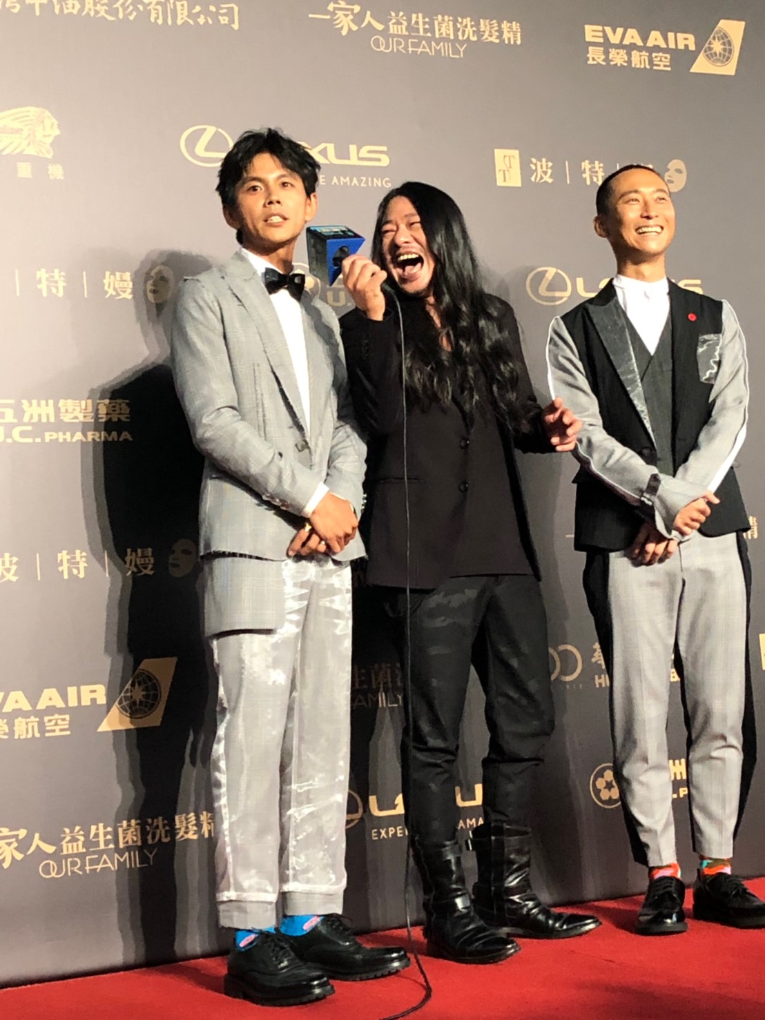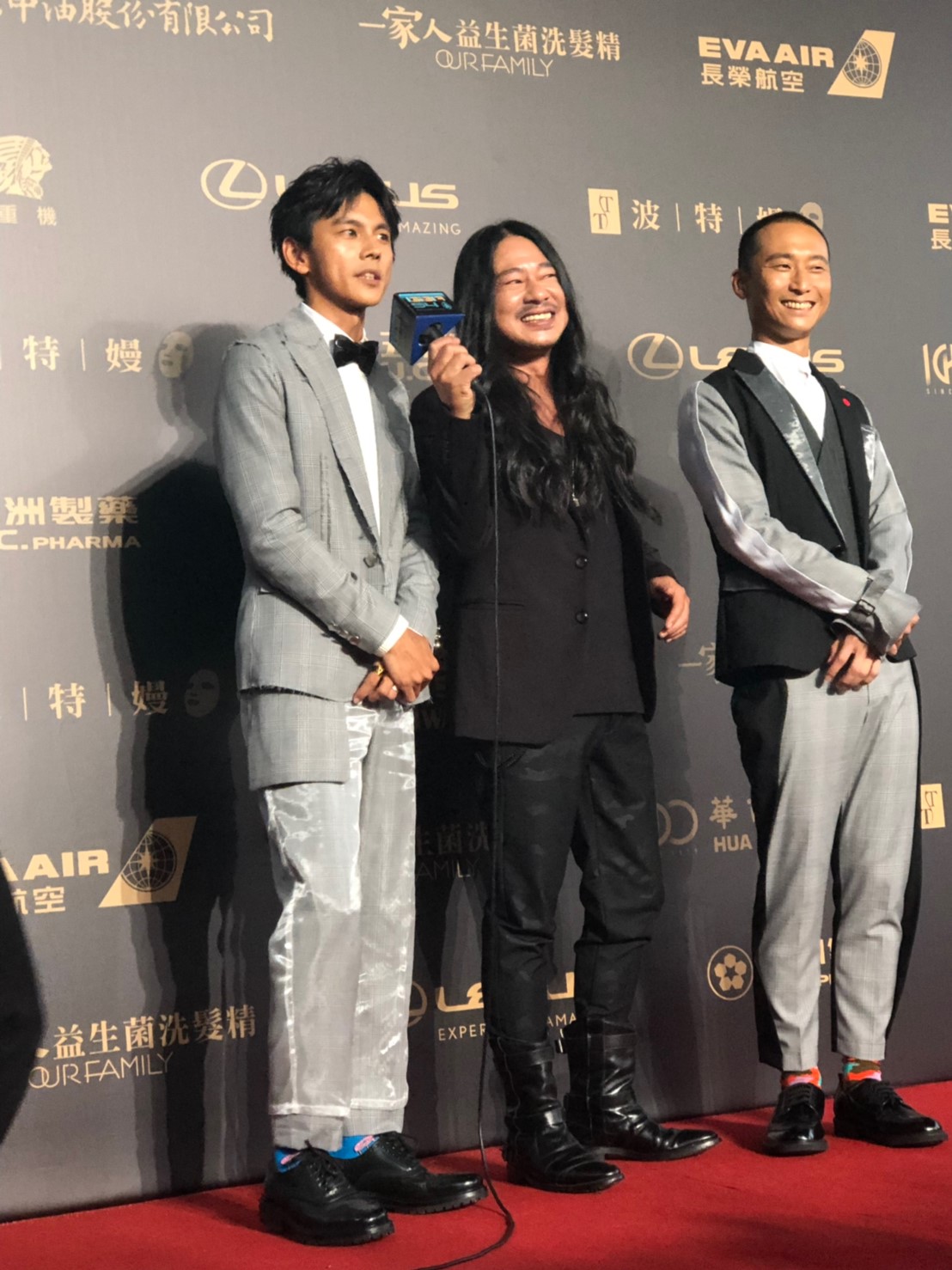 而今日紅毯上,浩角翔起也和亂彈阿翔一起走紅毯,外界相當訝異阿翔為何決定現身典禮,他則大方回應「很榮幸可以入圍,因為有浩子和阿翔哥陪,所以一起共襄盛舉。」被問到老婆和家人有沒有一起來,阿翔則隔空放閃說到「老婆今天人在家裡看轉播」。