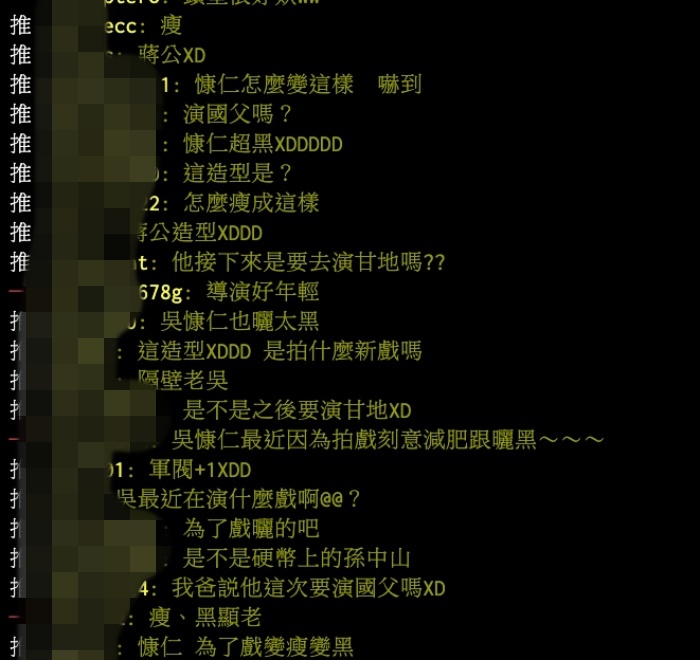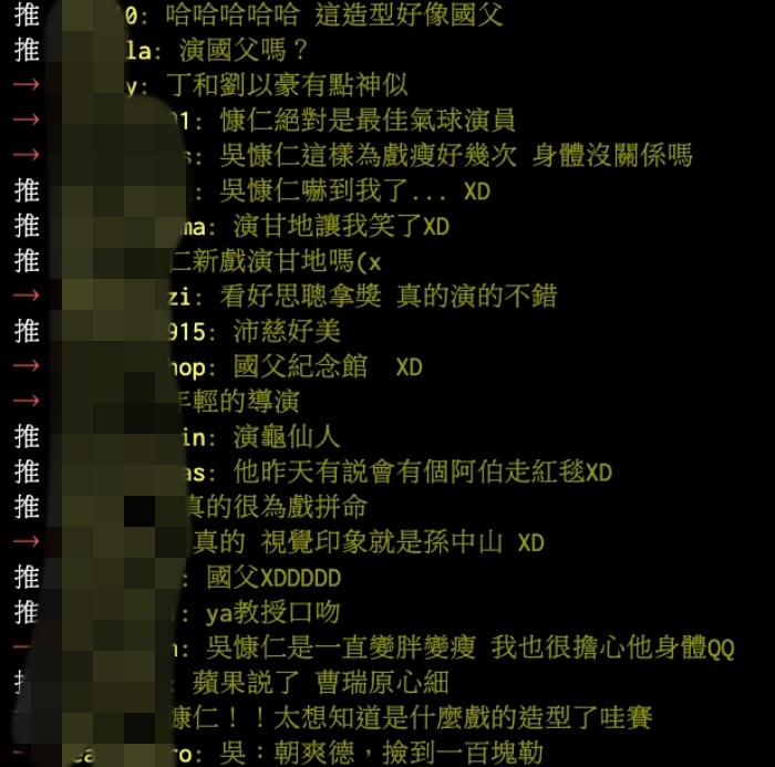 吳慷仁一現身PTT網友也炸鍋討論,紛紛留言直呼「國父?」、「吳慷仁嚇到我了」、「視覺印象就是孫中山」、「演國父嗎?」、「是不是硬幣上的孫中山」、「蔣公造型XD」。