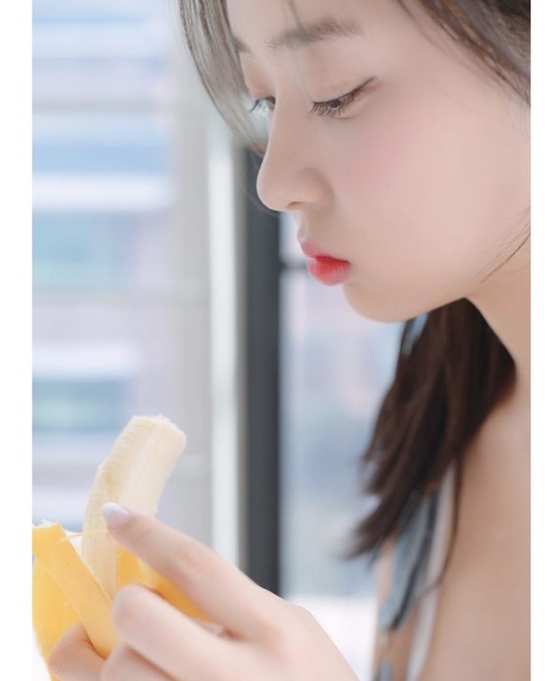 九月底時,申才恩先在IG上分享自己握著香蕉的照片。照片中她綁著俏麗的雙馬尾,雙眼緊盯著手中剝皮的香蕉,眼神無邪,看起來十分無辜。而她身上穿著一件鬆垮的「吊嘎」,大露北半球和側乳,就像沒有穿內衣一樣,除此之外,申才恩還搭上一件牛仔連身裙,看起來既清純又性感。
