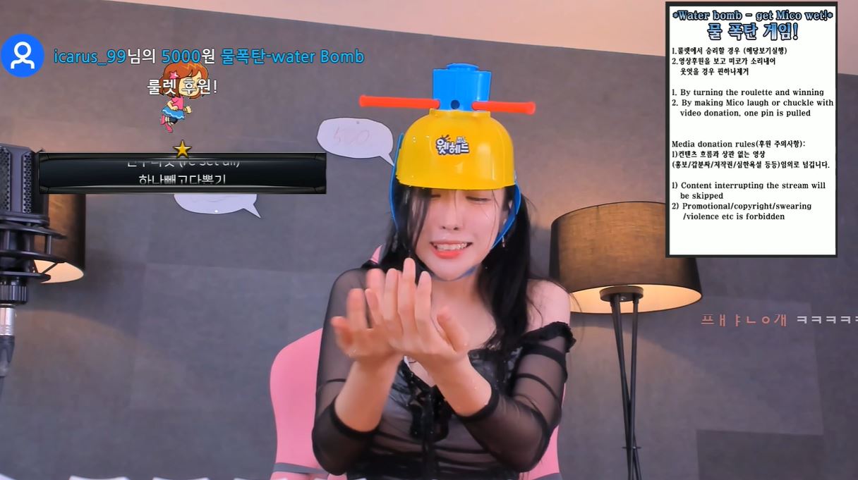 網路平台TWITCH早有設下不少直播限制,針對色情畫面也指出不得穿著無法出現在公眾場合的衣物,然而仍有直播主突發奇想既能不被ban台又能達到養眼畫面。就有一名來自南韓的28歲實況主Bella近日玩濕水挑戰帽,鏡頭前淋到半身濕透,擦拭頭髮時還不忘前傾倒胸,畫面令網友暴動直呼「真的很會玩」!