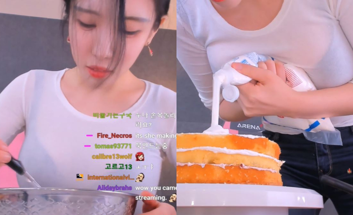 事實上Bella一向都不吝於展現好身材,上月生日直播時Bella還直播做蛋糕,攪打鮮奶油的畫面引起網友暴動。當天Bella穿著薄透白T起先邊聊天邊打奶油,隨後則高速單手攪動鮮奶油長達30秒時間,同時胸口也因此跟著不斷晃動還不斷喘氣,養眼畫面就讓大批網友表示「這個抖動我頭好痛」、「看到白T直接暈了」。