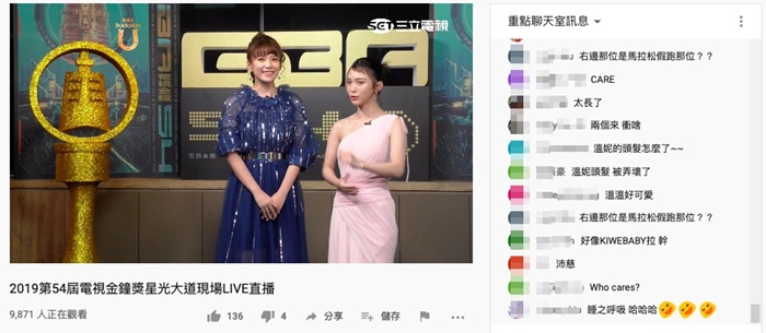 溫妮這次擔任金鐘54網路直播的破口主持人,與「解婕翎」、「香蕉」搭檔,讓網路直播廣告時不無聊。當時溫妮穿著一襲粉紅色長裙,將後方頭髮全部盤起,然而最引人注目的便是溫妮的瀏海,只見過多的髮膠讓頭髮呈現稀疏的模樣,難懂的造型瞬間遭網友洗版表示,「溫妮頭髮被弄壞了」、「好像Kiwebaby」、「溫妮的頭髮怎麼了~」。