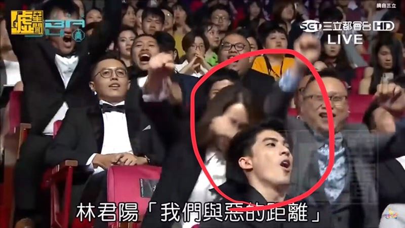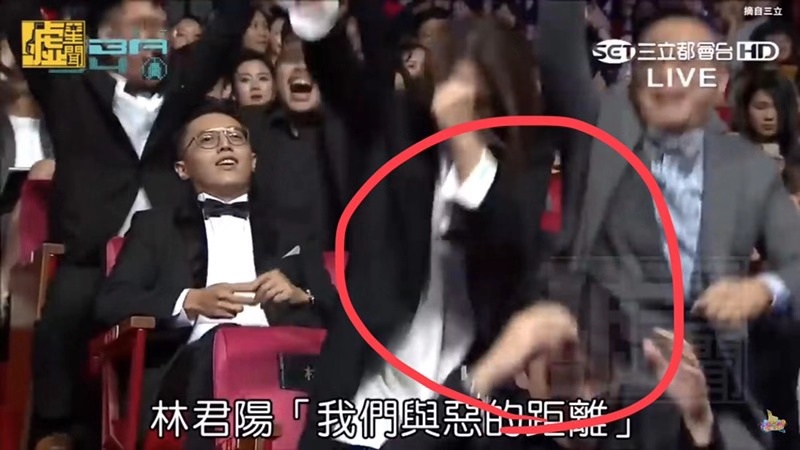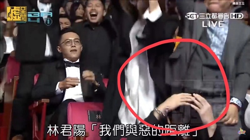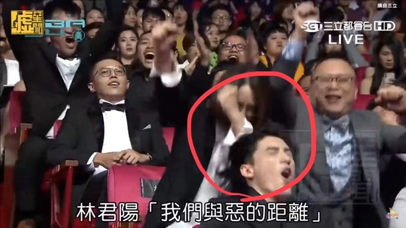 近日在Dcard的臉書平台上面發佈了一則貼文,內容寫道「這下可痛了?得獎的力道......」,然後附上多張截圖畫面。我們從截圖中可以看到,在《我們與惡的距離》導演林君陽得獎時,製作人林昱伶握著拳頭往前要站起來時,直接往坐在她前面的林哲熹後腦勺尻落去!結果林哲熹當場痛到整個臉糾結在一起「(゚д゚)」,還不忘抱頭一下,接著順勢跟大家一起站起來歡呼!不料,這短短的過程居然被網友們記錄下來!