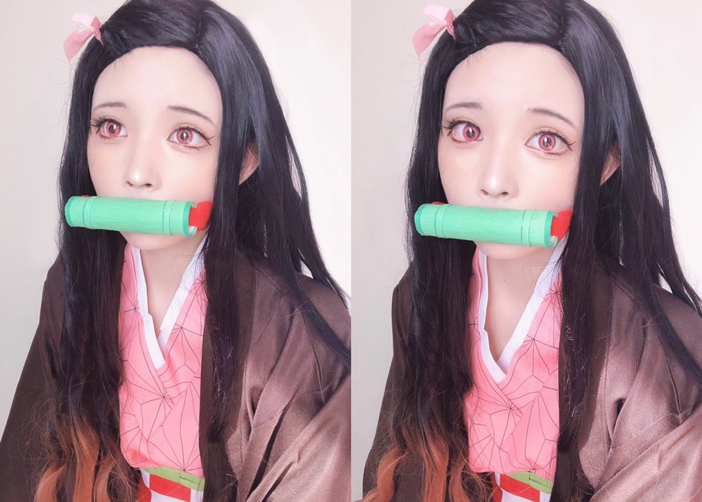 近期陸續出現不少國內外Coser嘗試扮演人氣角色妹妹「禰豆子」,就有一名日本Coser推特帳號為「ゆるめチャッッッ」,從妝髮到服裝細節都一一複製。對比Coser和禰豆子本尊照片可見,ゆるめチャッッッ本身的雙眼皮及臉型就和角色神似,搭配額外造型包括帶了粉橘色放大片、末梢染有橘紅髮色的假髮,就連服裝配件也十分講究從粉色和服和棕色罩衫,還有嘴裡為了防止妹妹「禰豆子」咬人所以含著的竹筒都細心臨摹。