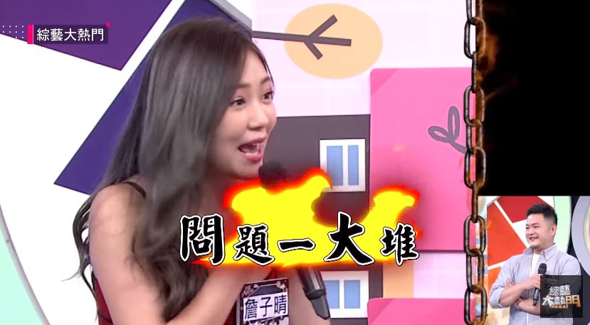 31歲女藝人丫頭(詹子晴)從「黑澀會」畢業後依然留在演藝圈,現在是綜藝節目的寵兒,時常能在各大綜藝節目見到她的身影。丫頭大方直爽的個性相當具有觀眾緣,雖然她的甜美外型和招牌娃娃音常給人嬌弱的形象,但其實她相當有經商頭腦,也十分有想法。她從2012年開始,和前警政署長王卓鈞的長子王惟立William交往多年,雖然一度爆出分手,但後來還是放不下對方,所以決定復合。近來丫頭上節目大爆男友的缺點,但同時也透露對方「暖心的一面」。