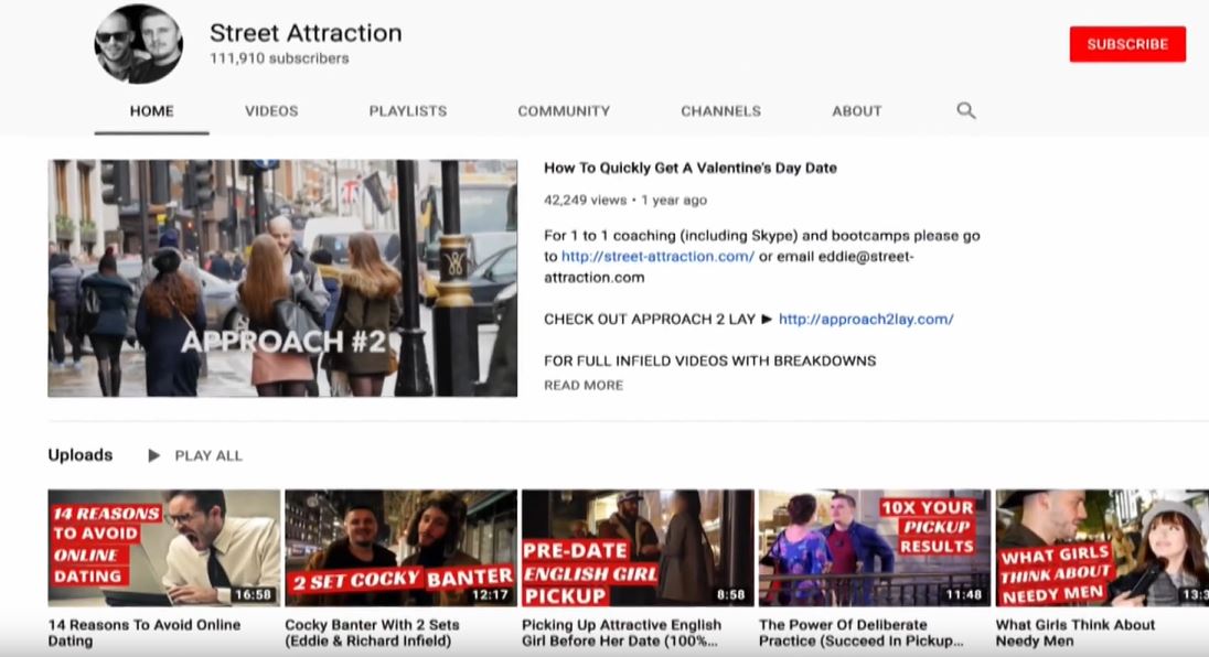 經訪問,撩妹課程是由公司Street Attraction經營,負責人為一名年僅34歲的男子艾迪希欽斯(Eddie Hitchens),該線上課程被稱為「訓練營」(Boot Camp)都會上載到YouTube頻道上,至今已有超過250個影片,也有10萬名網友訂閱,預估產值高達8千萬英鎊(約新台幣30億元)相當驚人,每位學員在一開始都必須繳交600英鎊(約新台幣2.4萬元)的學費。