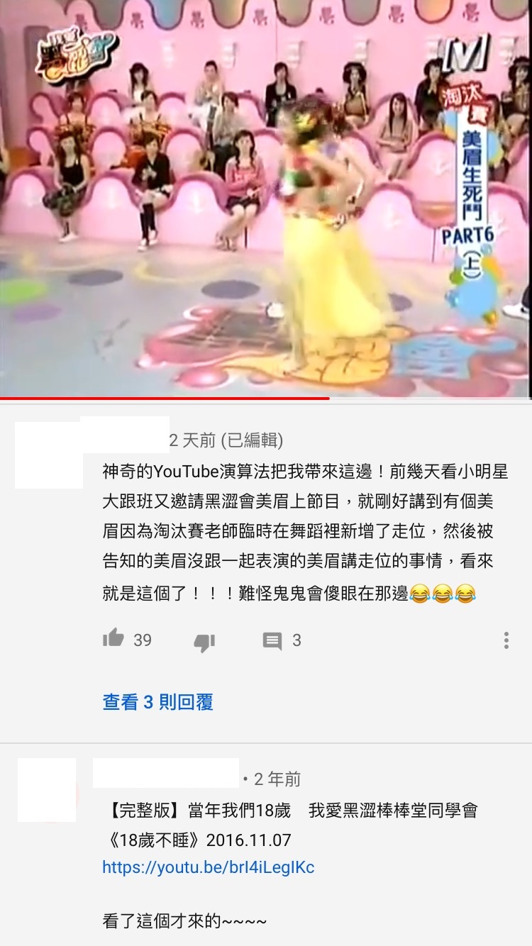 前一陣子黑澀會美眉們上《小明星大跟班》分享當年不能說的往事,引起網友們廣大的迴響與討論,有不少人都在紛紛猜測APPLE、詹子晴、薔薔、李宇希、程小刀、EMMA這幾位美眉他們在節目中所爆料的對象到底是誰!其中大家對於第一件「更改走位不告知另一位美眉,結果害自己被淘汰!」這一點非常好奇,沒想到近日竟然因為Youtube演算法的關係,居然替大家帶來了解答啊!
